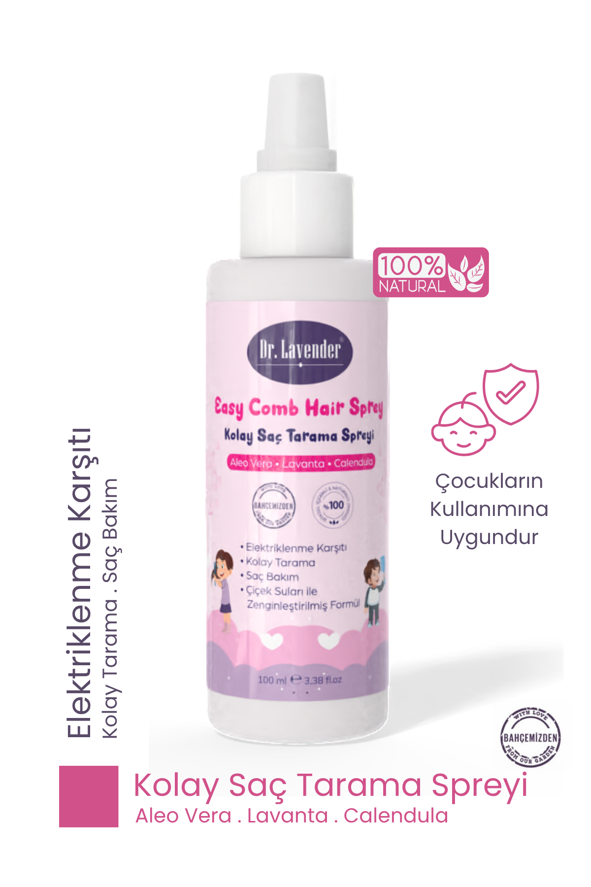 Doğanın gücünü çocukların hassas saç bakımına taşıyan Dr. Lavender Kolay Saç Tarama Spreyi, lavanta, aloe vera ve calendula (aynısefa) gibi doğal çiçek suları ile formüle edilmiştir. Tamamen saf ve bitkisel içeriği sayesinde hassas saç derilerine zarar vermez, saçların kolayca taranmasını sağlar.